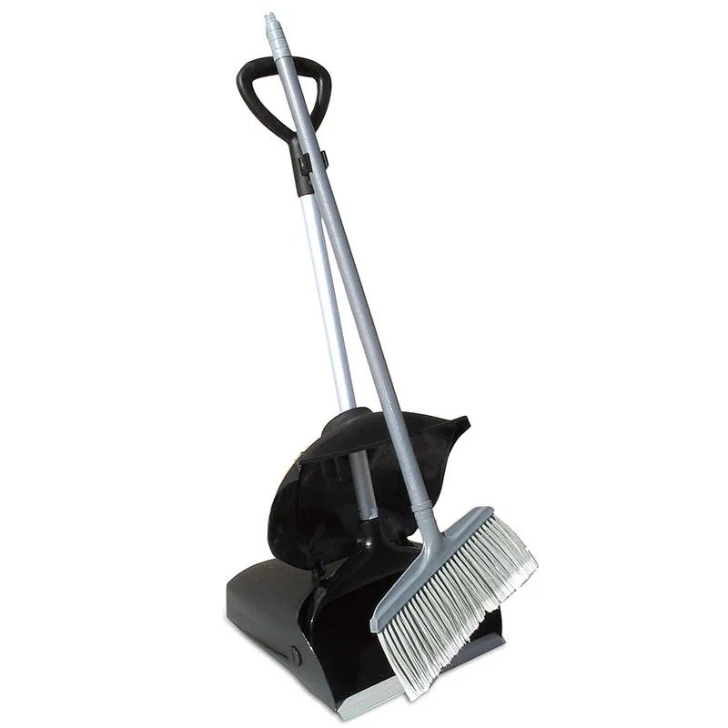 Край совка плотно прилегает к полу, не давая мусору рассыпаться при заметании. Длинные ручки позволяют не нагибаться во время уборки.