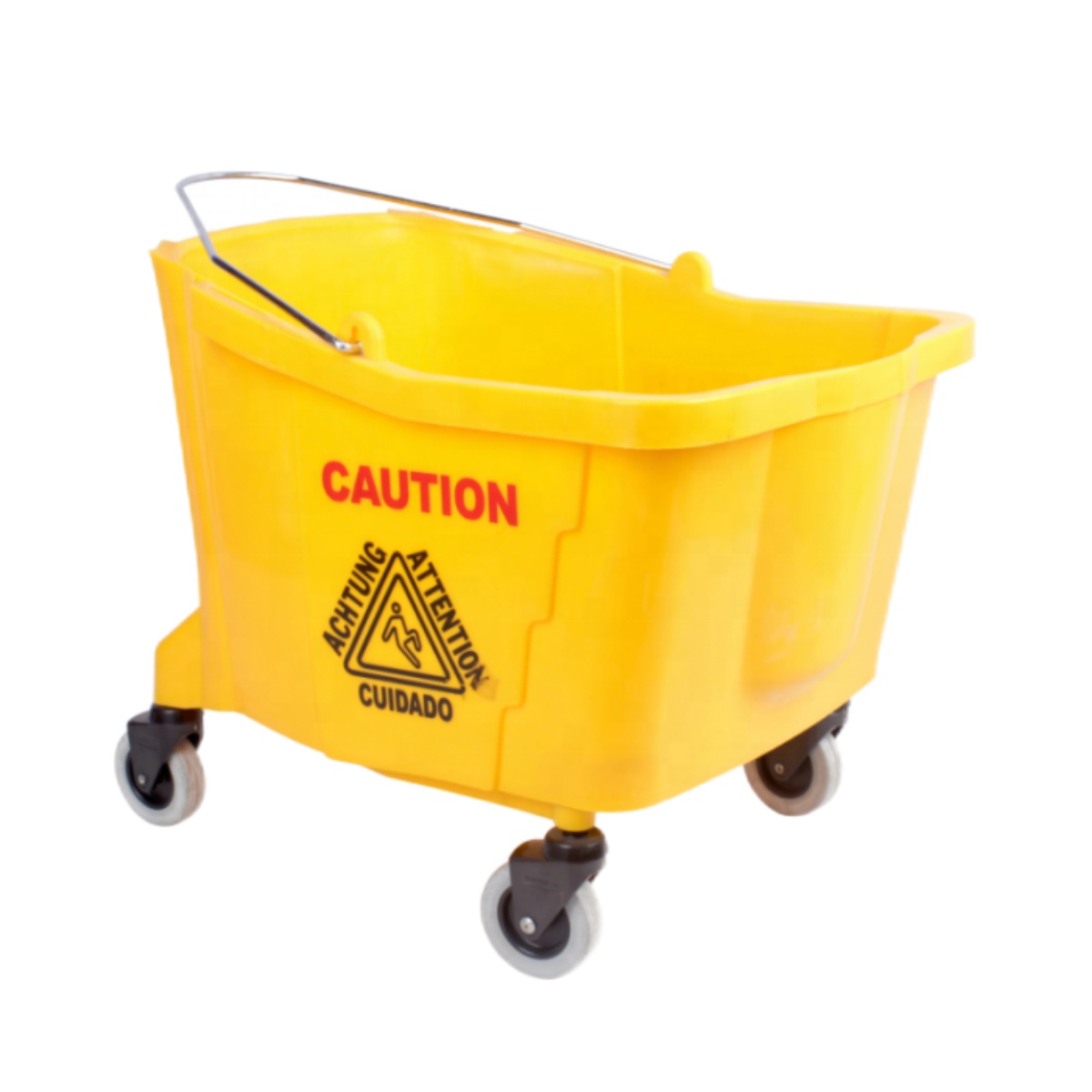 Конструкция оснащена колесиками на ножках, что позволяет без труда перемещать даже максимально наполнено ведро, не расплескивая при этом воду. Металлическая ручка помогает легко управлять тележкой.
