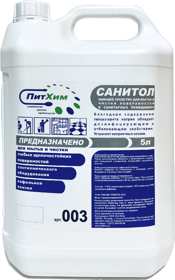Моющее средство для всей санитарной зоны, содержит гипохлорит Питхим САНИТОЛ