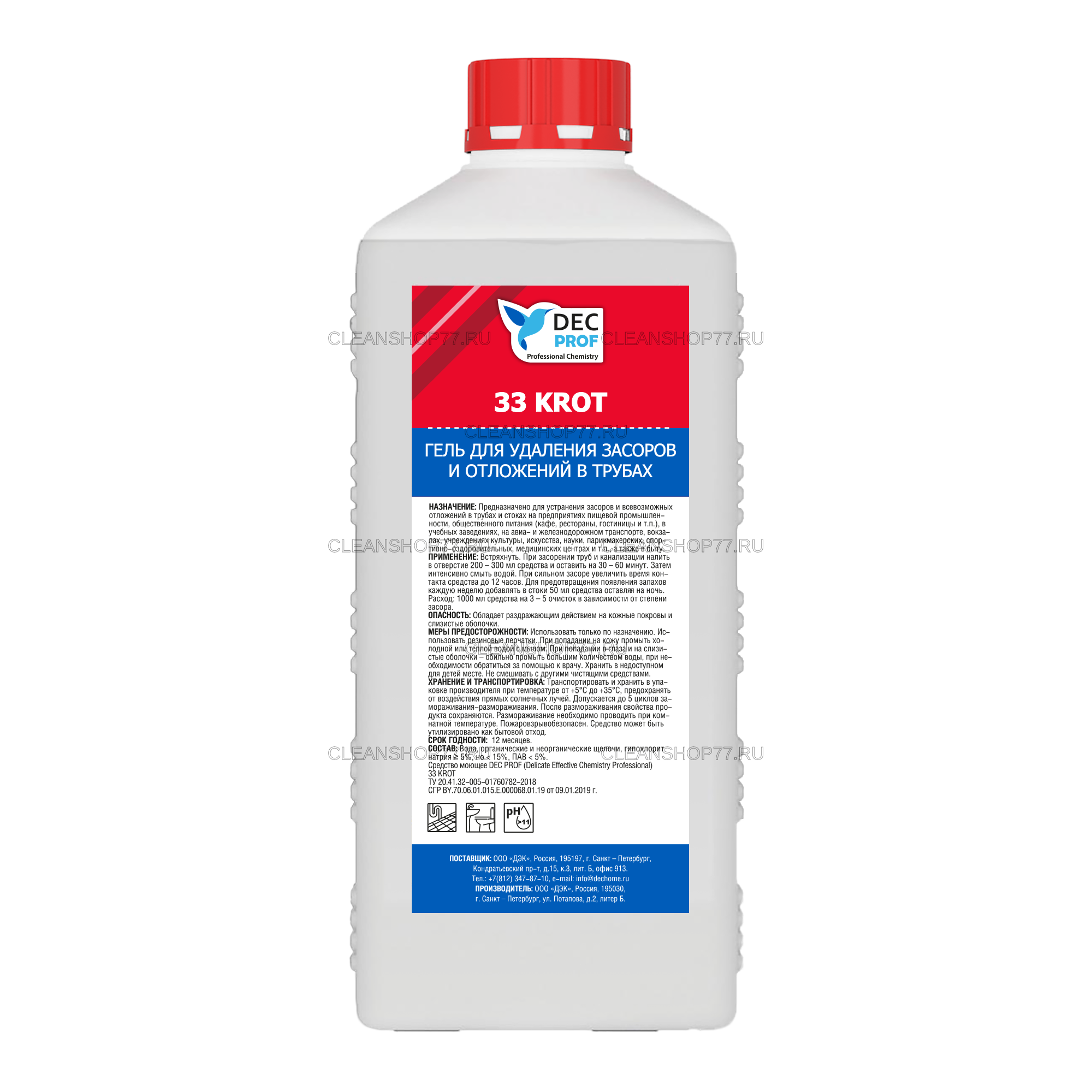 Хлорный гель DEC Prof 33 Krot для удаления засоров и отложений в трубах