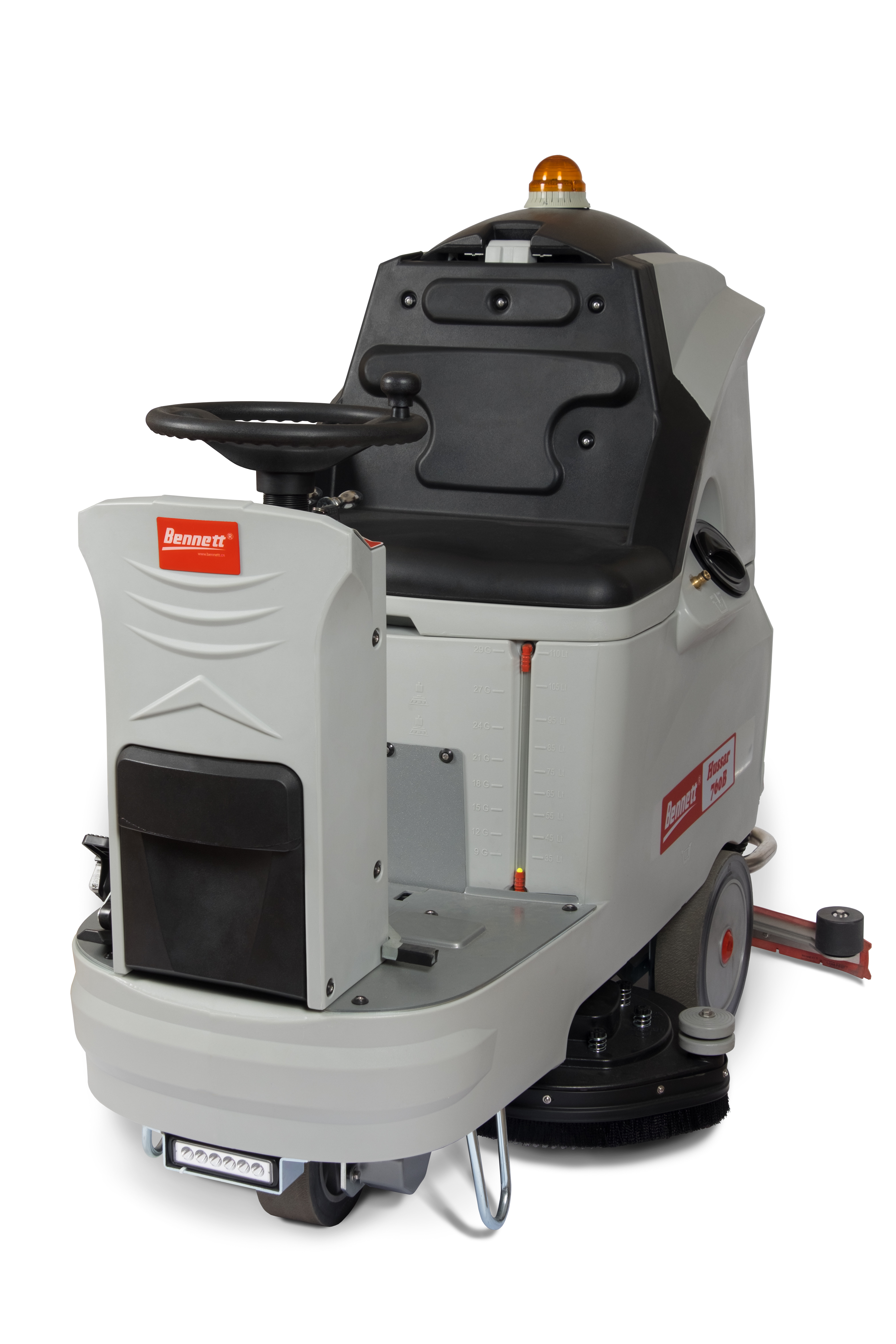 Bennett Hussar H760b – поломоечная машина с сиденьем для оператора оснащена тяговым приводом на переднее колесо, двумя дисковыми щетками с общей рабочей шириной 760 мм. Оптимальное сочетание размеров поломоечной машины и ёмкости АКБ позволяет максимально эффективно использовать её при работе. Производительность 4 560 м2/ч и до 6 часов работы от одного заряда аккумуляторов дают возможность оператору убирать более 10 000 м2 за смену.
