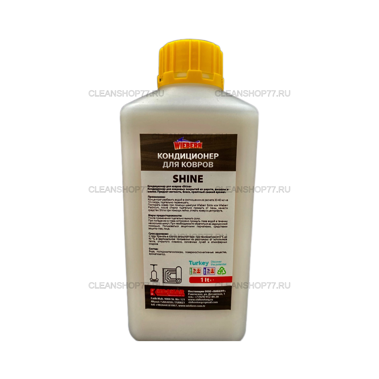 Постирать ковер при помощи шампуня Wieberr Extra или Wieberr Platinium, после стирки тщательно промыть от пены, нанести средство Shine при помощи лейки, отжать ковер в центрифуге.