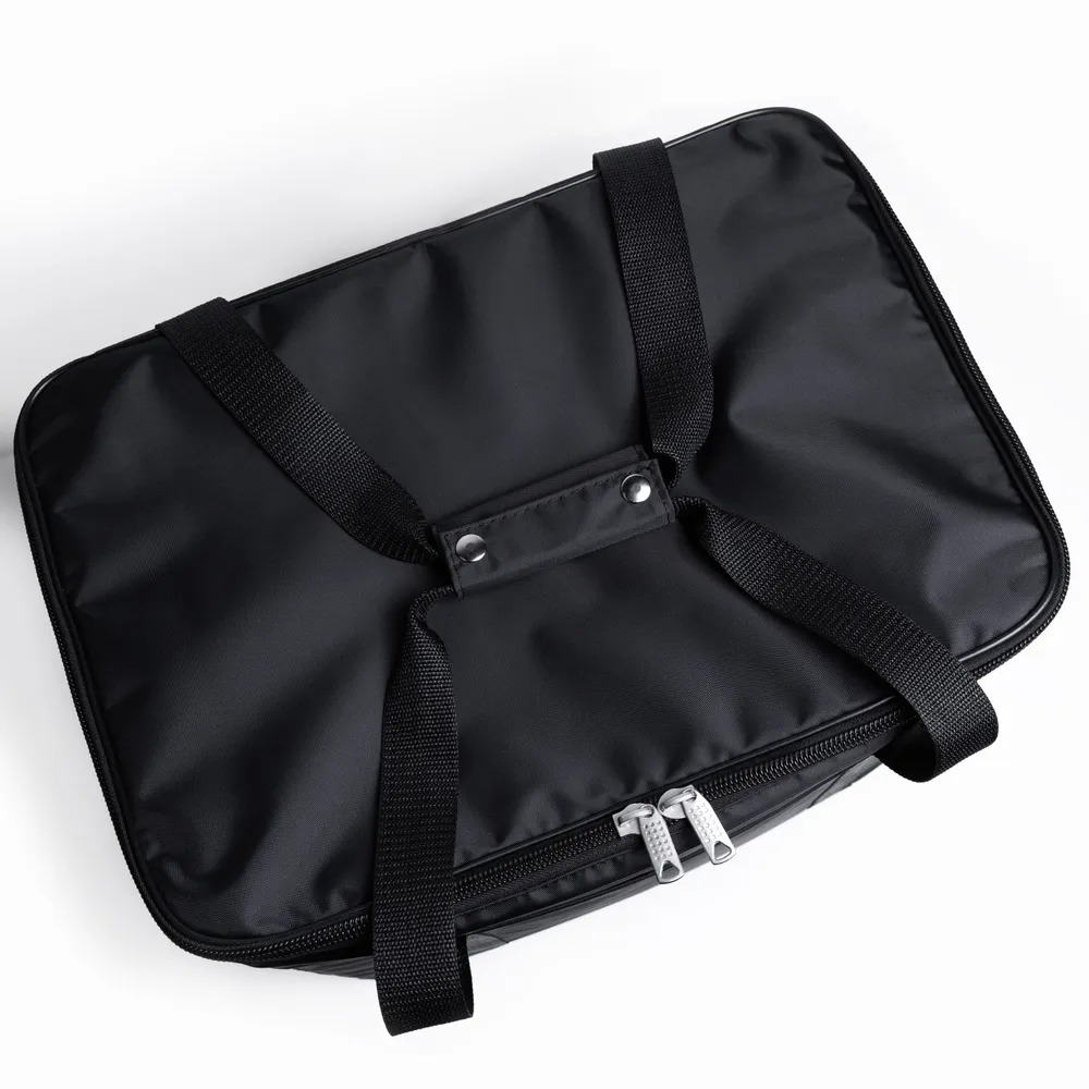 Внутри сумки предусмотрены крепления для бутылочек по 5 штук с каждой стороны, а также, прозрачный карман для документов/инструкций.